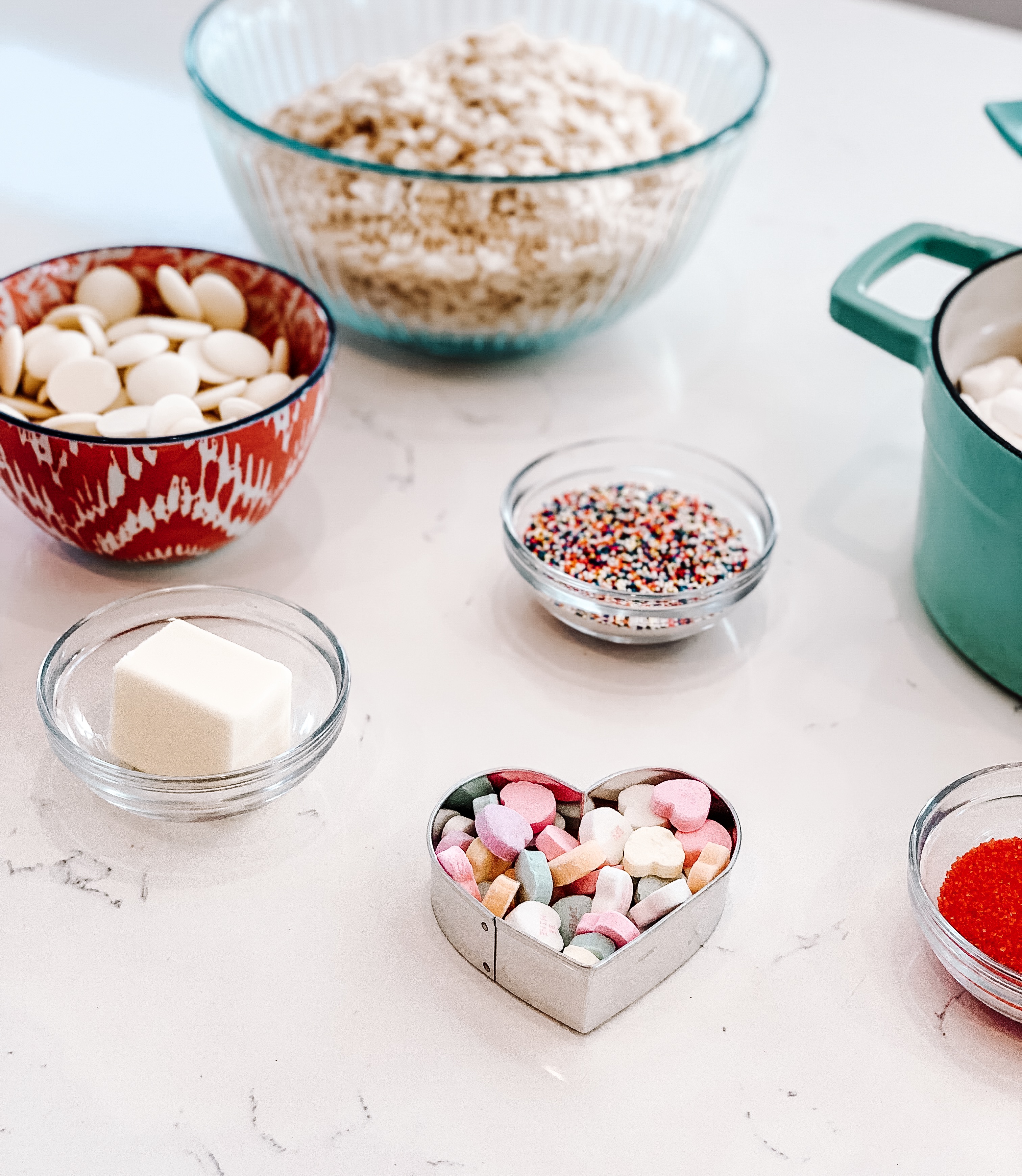 There are a ton of versions of these on Pinterest. I picked my ingredients based on wanting a couple different colors to decorate the Rice Krispie treats with, and knowing I wanted to do Oreos, too. The great thing about these is you can change the colors and shapes to fit any occasion. Green trees with sprinkles would be so cute for the holidays and numbers or letters in different colors would be great for birthday parties.