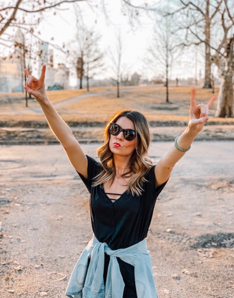 I got the opportunity earlier this week to style an outfit for myself that’s not something I’d typically wear. We went to a Metallica concert and I was so excited because the show was going to be a completely new experience for me. I’ve never been a fan of heavy metal (I admit I only knew one song they played), but was looking forward to a new experience. I knew my usual flowy, patterned, and somewhat colorful concert look was not going to work. I never wear all black because I feel it’s too heavy of a look for me most of the time. But, I wanted to do something totally different and have fun getting a bit out of my comfort zone.