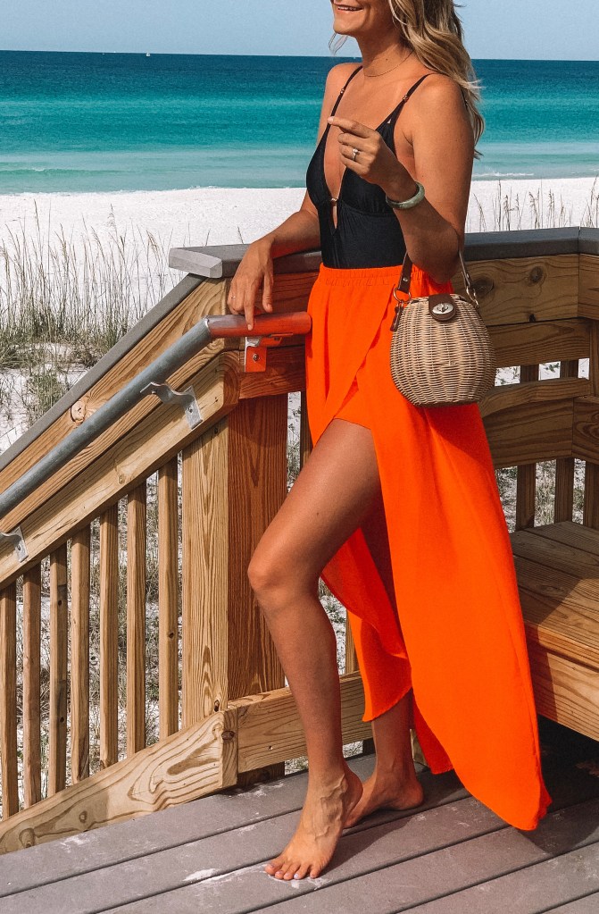 One of my favorite neon pieces in my closet is the bright orange maxi skirt featured below. I’ve worn it recently a couple different ways: 1.) with a black one piece swimsuit as cover-up at the beach and 2.) with a simple cropped tee while exploring an adorable northern Michigan lake town with some good friends of ours. I felt comfortable + confident each time I wore it and have a feeling I’ll be reaching for it quite often over the next few months!