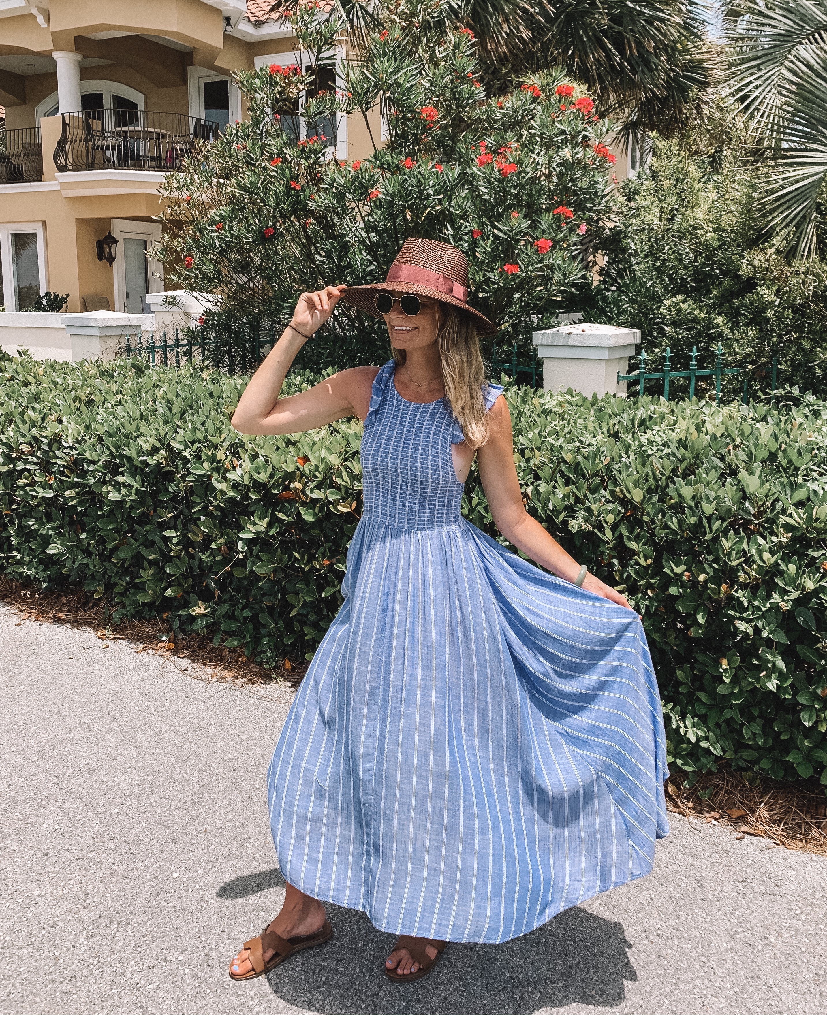 dress (similar here & here – ON SALE) | hat – ON SALE (love this one for fall – ON SALE) | slides |shades